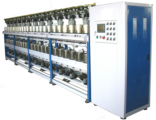 在不同原料、形狀的芯線表面進(jìn)行紗線長(zhǎng)絲的包覆。產(chǎn)品主要為裝飾用的紡織線帶。