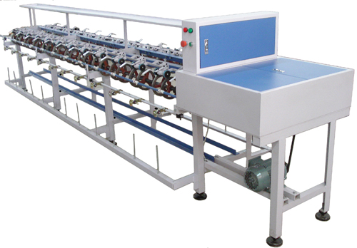 本產品是我公司系列花式捻線機的配套輔助設備。用于生產押線卷裝,該卷裝置于中空錠錠桿上隨中空錠高速旋轉,將押線以纏繞的方式加捻再由芯線和飾紗形成的花式紗線外部來固定已形成的花式效應。
